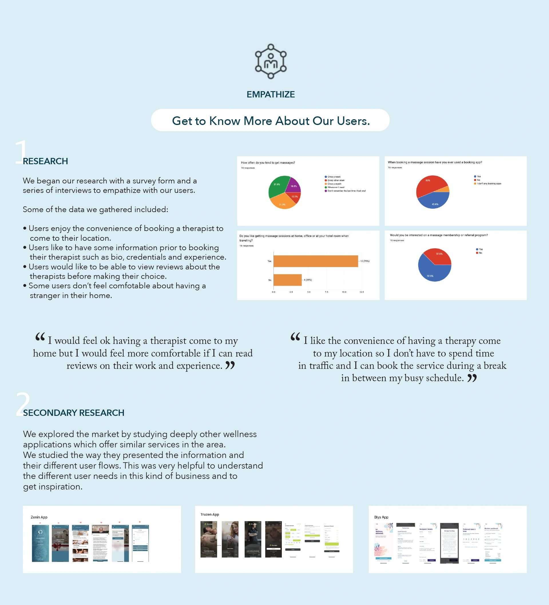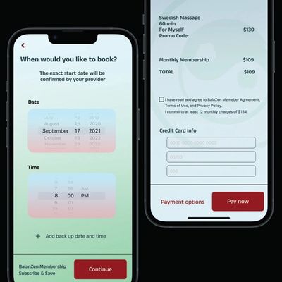 Our Balanzen application offers an easy to book-at-home appointments for different types of massages by inputting their availability, the application pairs them with certified therapists available during those set times to come to the convenience of their homes, workspace or event.